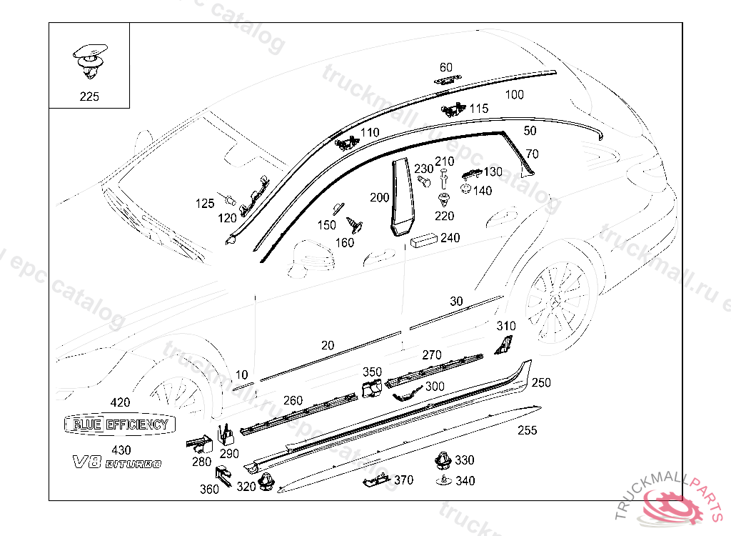CLIP WATER REPELLENT AT LEFT A-PILLAR, FIRST EXHAUST STOCK OF OLD PARTS UP TO IDENT NO. V 00003220130619, Replaced By: A0039919470