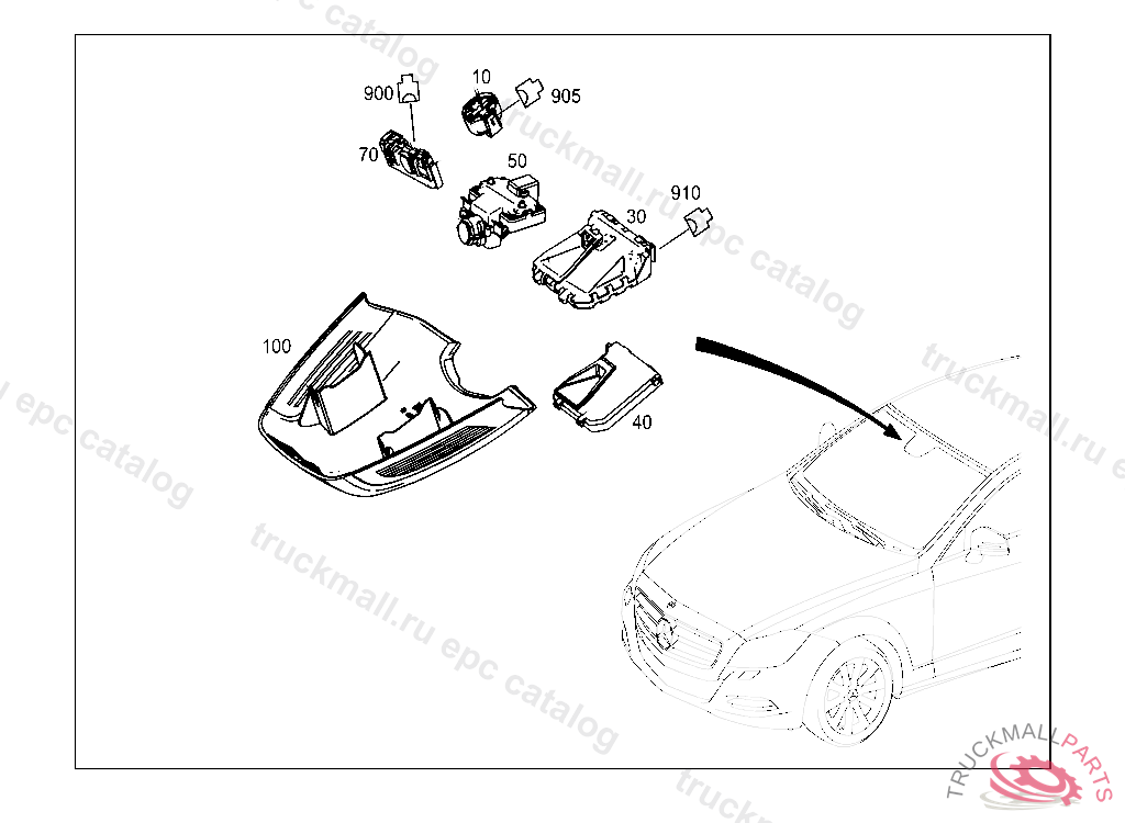CONTROL UNIT WINDSHIELD TOP, FIRST EXHAUST STOCK OF OLD PARTS UP TO IDENT NO. A 20131220 PART MUST BE CHECKED AFTER INSTALLATION FOR CURRENT FLASHWARE, Replaced By: A0009000805