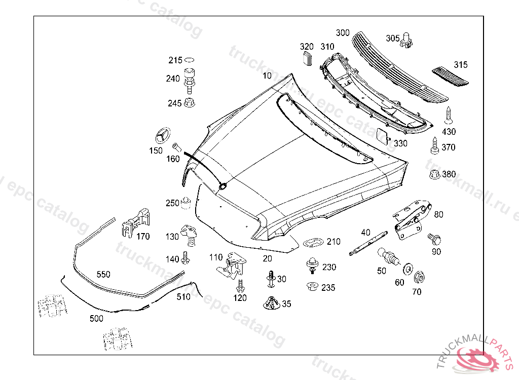 RETAINING HOOK ENGINE HOOD,FRONT CENTRAL, Replaced By: A2198800064