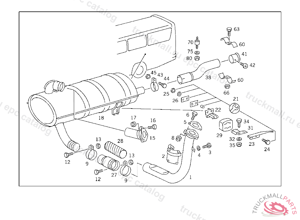EXHAUST MUFFLER , FOR USE WITH MERCEDES-BENZ BODY UP TO IDENT NO.039438, FOR VEHICLES LESS MERCEDES-BENZ BODY UP TO IDENT NO.040793