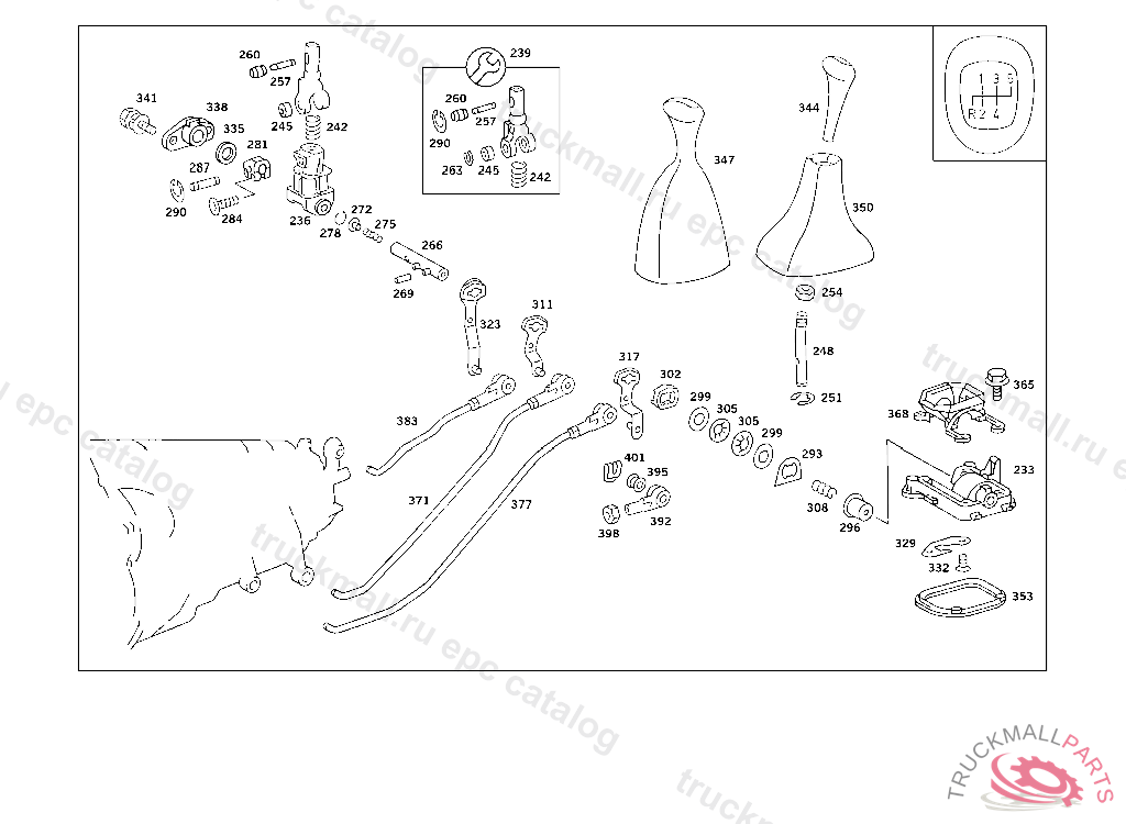 FLOOR SHIFT MECHANISM FOUR-GATE SHIFT, FROM 1.88 FOUR-GATE SHIFT A 427031 F 453773