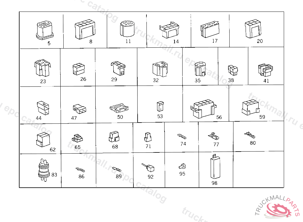 PIN BUSHING HOUSING. PLUG HOUSING FROM CHASSIS/CAB CONNECTION POINT TO TACHOGRAPH