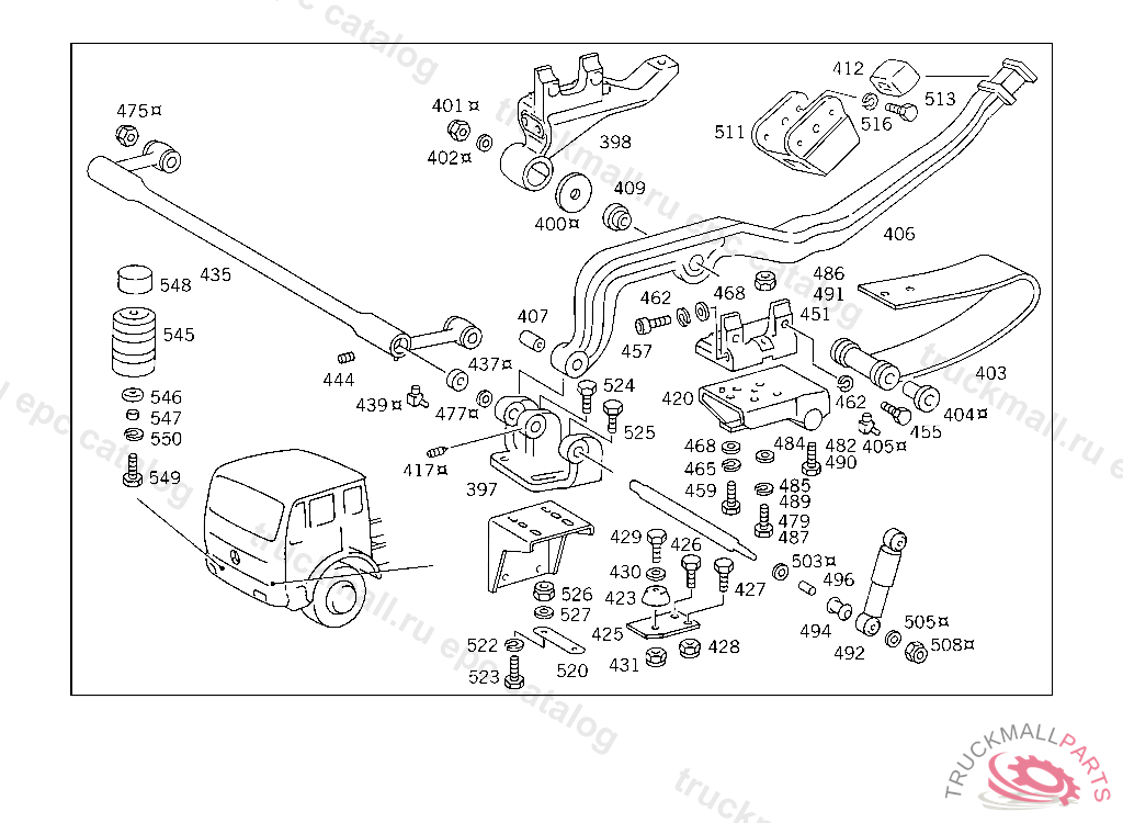 MOUNTING , MODEL 416,417 FOR USE WITH MEDIUM-LENGTH MERCEDES-BENZ CAB FIRST EXHAUST STOCK OF OLD PARTS UP TO IDENT NO. 4 837892, Replaced By: A6208901603