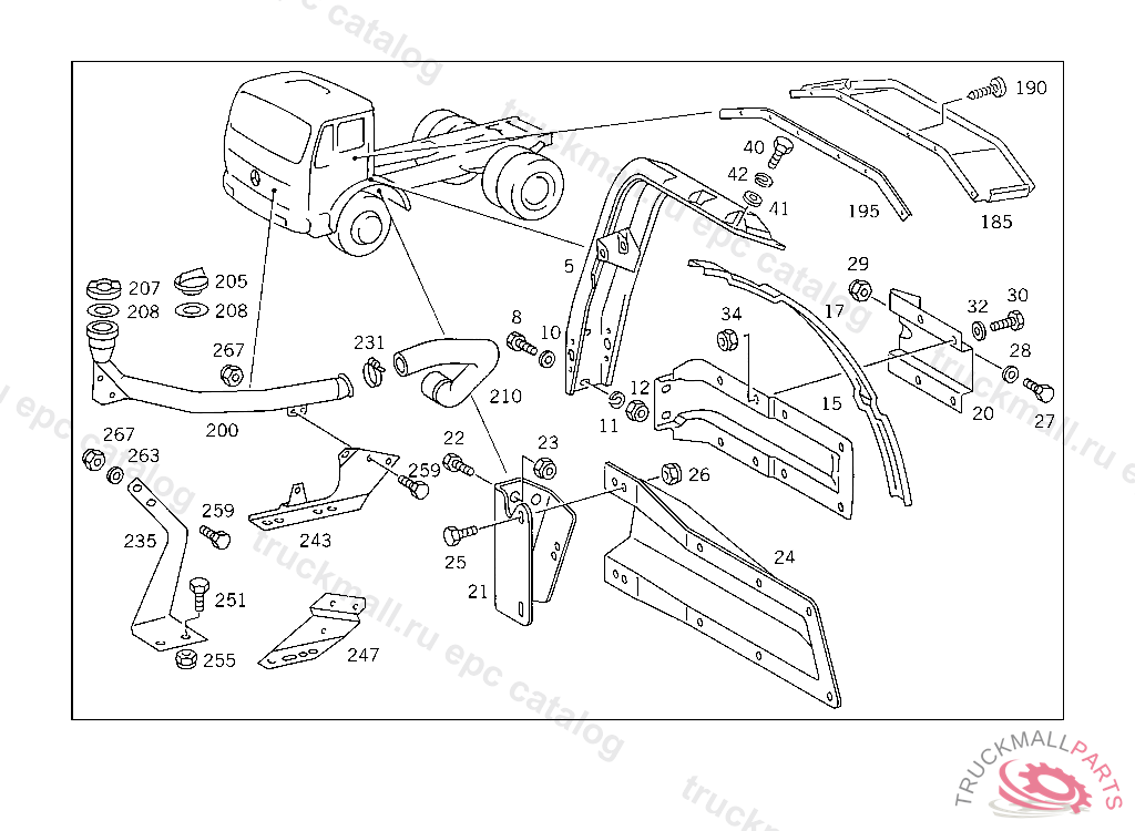 SUPPORT LEFT FENDER, WITH 385.068,069 ON VEHICLES WITH DB-CAB,ONLY ON 385.019 ONLY FOR VEHICLES HAVING NO MERCEDES-BENZ PLATFORM