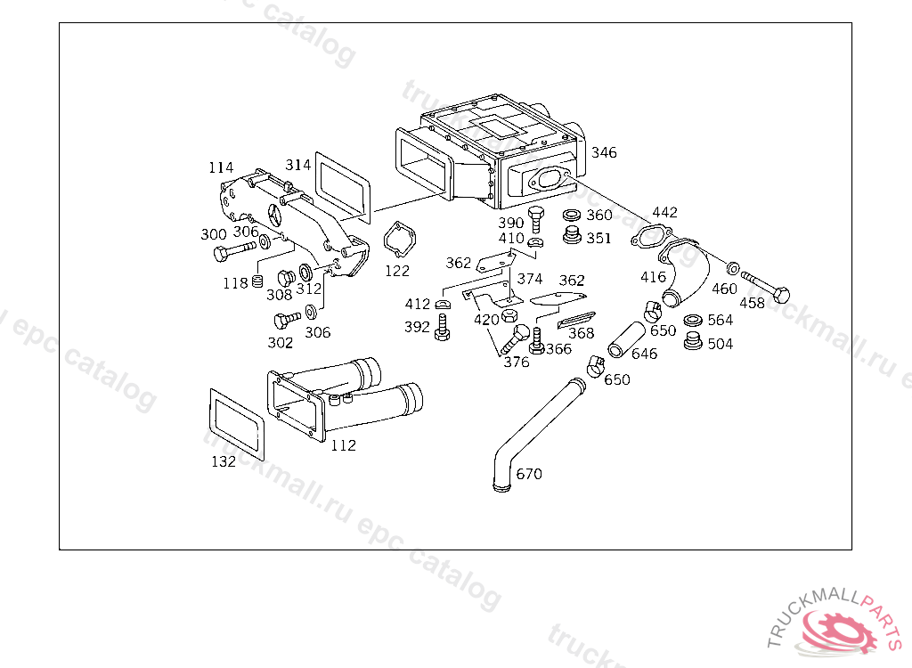 CHARGING AIR INTERCOOLER , EXHAUST STOCK OF OLD PARTS UP TO ENGINE 001000 EXCEPT FOR 000966/967/968, Replaced By: A0010980520, +001N000908014000, +001N007603014104