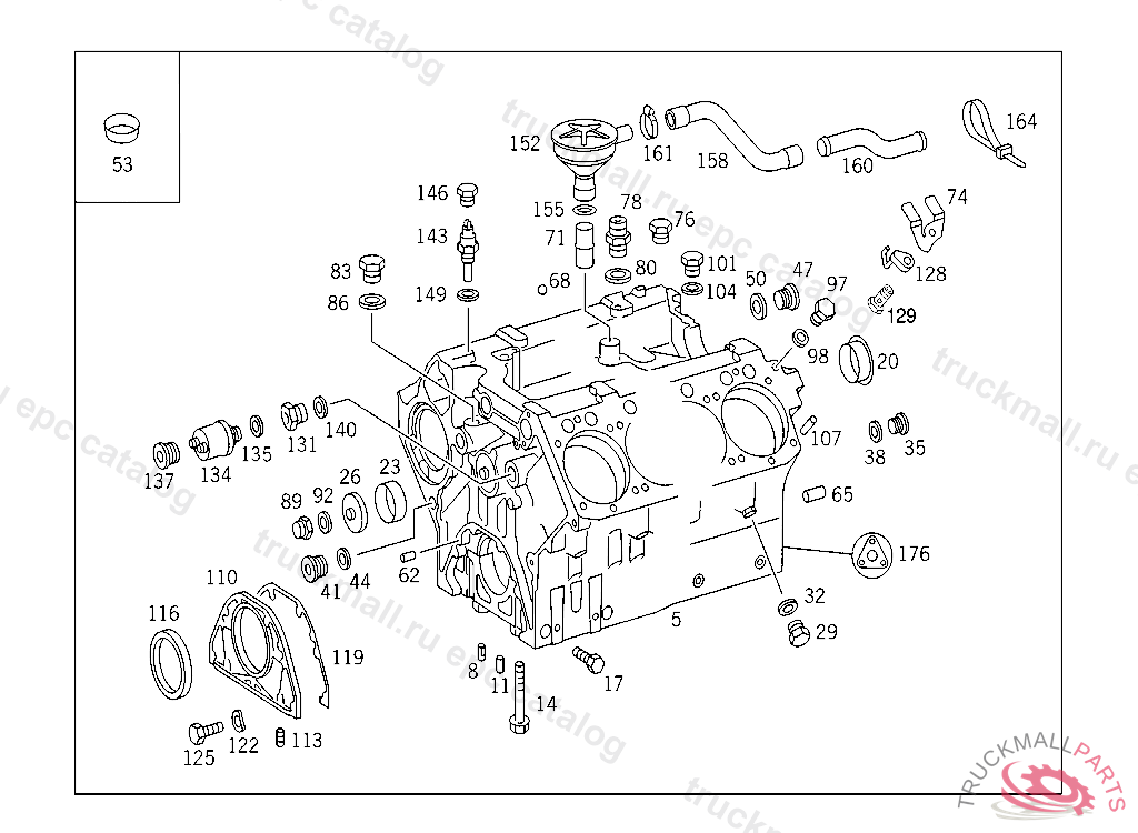 GASKET KIT CYLINDER CRANKCASE, FOR BREAK-DOWN OF OF GASKET KIT, SEE END OF GROUP 01, ORDER ADDITIONALLY:"DIRKO-TRANSPARENT" TUBE OF SEALING MATERIAL FOR OF CYLINDER LINEROIL COOLER GASKET ON CYLINDER CRANKCASE,UP TO ENGINE 129660WATER PUMP GASKET ON CYLINDER CRANKCASE,UP TO ENGINE 129660 SEALING MATERIAL FOR OF CYLINDER LINER OF AIR COMPRESSOR