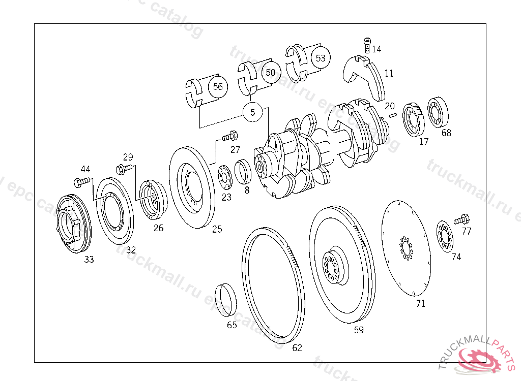 CRANKSHAFT WITH CRANKSHAFT BEARING SHELLS AND CONNECTING ROD BEARING SHELLS, INAPPLICABLE TO MODEL 443.901-504