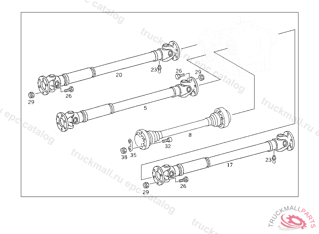 PROPELLER SHAFT FROM TRANSMISSION TO TRANSFER CASE, 082856 908102 EXCEPT FOR 082891,082892,082893,082913,082914,082915.