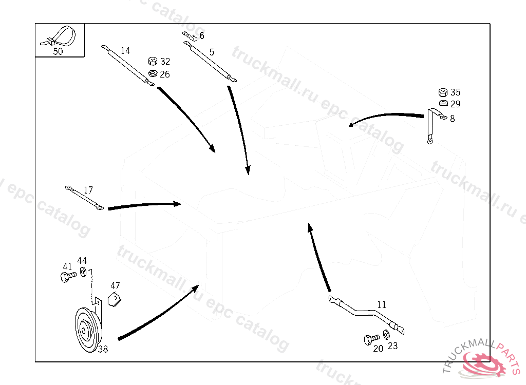 LOOM TIE , UP TO CHASSIS: 108.012 UNTIL PRODUCTION STOP 108.016 042417 108.018,019 043374 109.016 002452