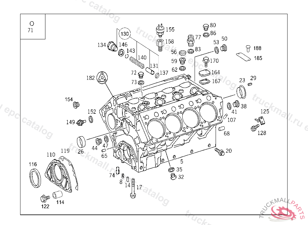 CRANKCASE P.T.O., UP TO ENGINE 094639 ORDER ADDITIONALLY: 2X N 910105 010008, 1X A 542 070 15 32, 1X A 541 201 07 30, 1X A 542 180 09 52, 1X N 910105012003, 1X A541 011 04 07, 1X A 541011 01 80, 6X N 910105 010001, 1X N 001474 004018 AS OF ENGINE 094640 ORDER ADDITIONALLY: 1X A541 011 04 07, 1X A 541 011 01 80, 6X N 910105 010001, 1X N 001474 004018, Replaced By: A5420102305, +001N000000001069, +001N007604014110