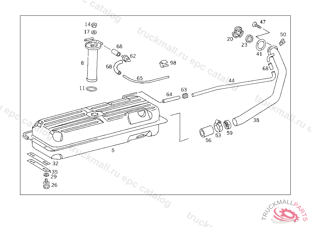 FILLER NECK , UP TO IDENT NO. 826383 WHEELBASE: 3350 MM UP TO IDENT NO. 831841 WHEELBASE: 3050 MM, Replaced By: A6014700626, +001A6014700028, +001A6014760126