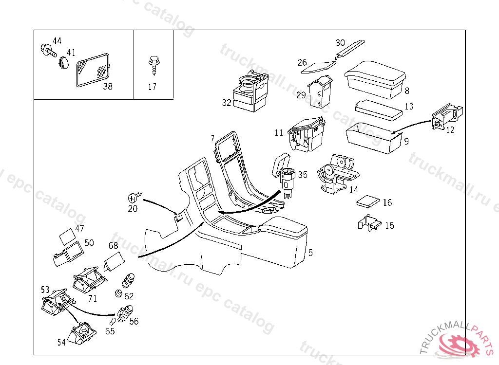 INTERIOR LAMP TRAY, F 129679 T 028296 EXCEPT CODE 809 EXCEPT T 029773 ALSO INSTALLED IN VEHICLE TO F 129678, T 028295 WITH CODE 800 ALSO INSTALLED ON T 001258