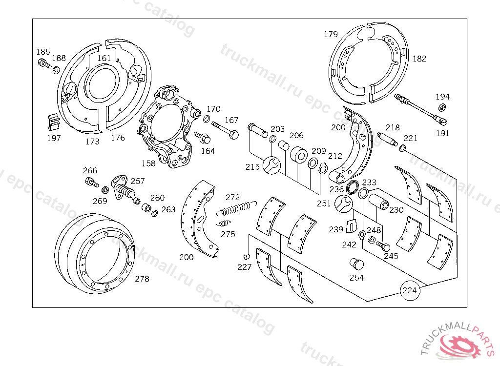 BRAKE SHOE , EXHAUST STOCK OF OLD PARTS NUMBER FIRST UP TO FRON AXLE D 027673,E 092867,G 009579, Replaced By: A3854201719