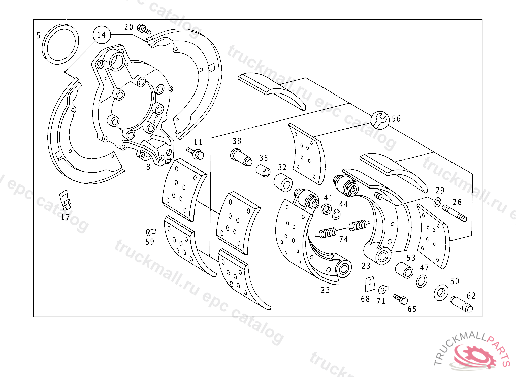 BRAKE SHOE , EXHAUST STOCK OF OLD PARTS NUMBER FIRST UP TO FRON AXLE D 027673,E 092867,G 009579, Replaced By: A3934202419