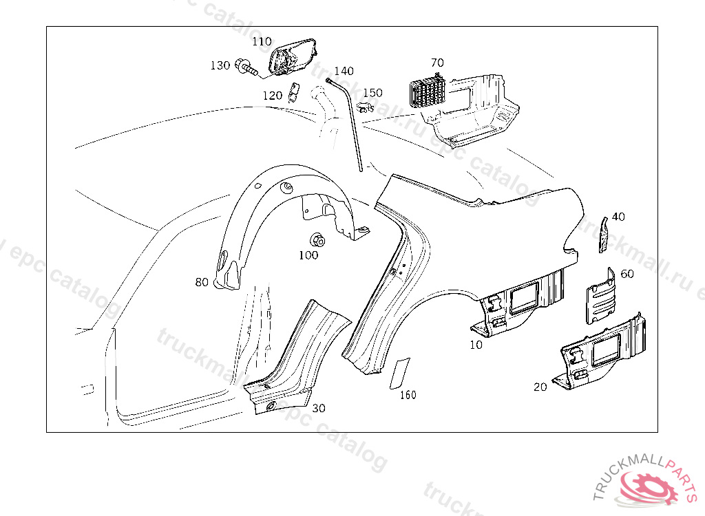 REAR FENDER WITH HOLE FOR ANTENNA,LEFT, ORDER ADDITIONALLY: 1 X 210 682 07 30 ISULATION LEFT REWORK FOR VEHICLES UP TO IDENT.NO.: 99/1 CABLE/LINES WHICH ARE ROUTED OVER THE RIVETS IN THE REAR FENDER,RIGHT AND LEFT, MUST BE WRAPPED WITH FELT AT EACH RIVET FELT PART NO.:A 000 983 89 10aJ 99/1 REWORK FOR VEHICLES FROM IDENT.NO.: 99/1 DRILL OFF BRACKET FOR BUMPER MOUNTING DRILL OUT HOLES FOR BUMPER MOUNTING RIVET
