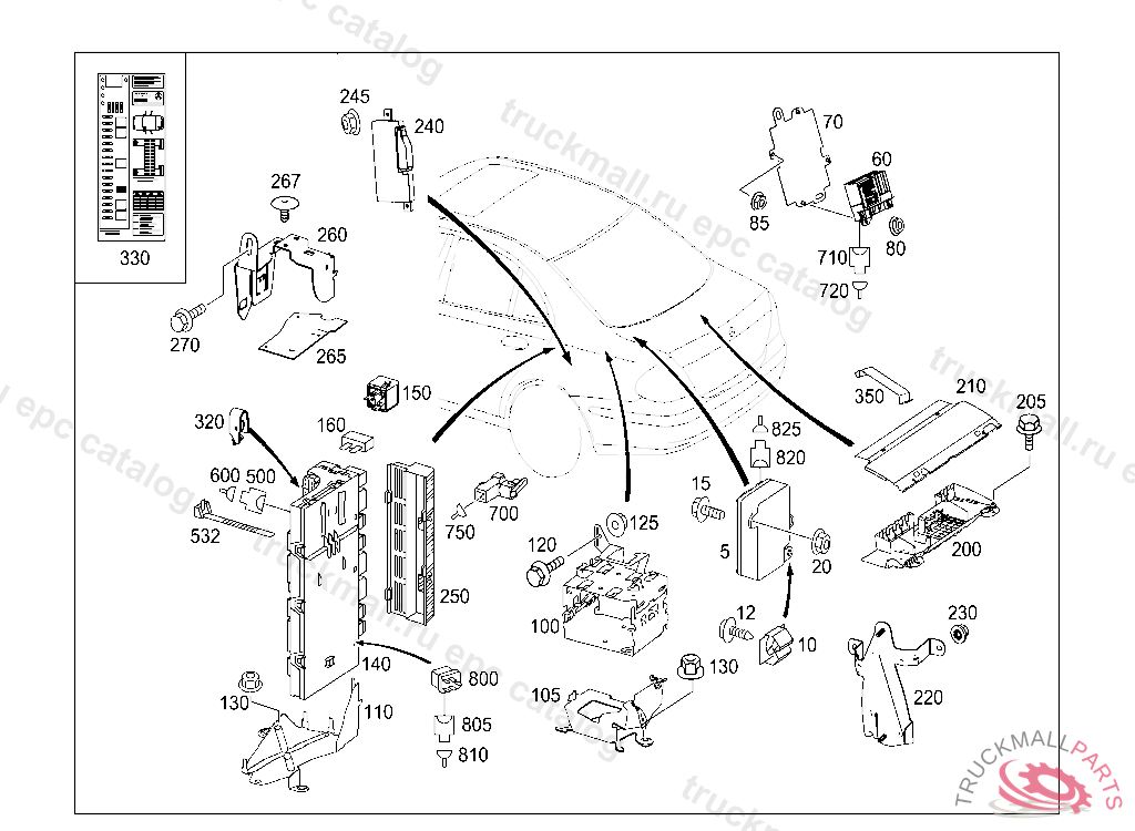ELECTRICAL BASIC MODULE SIGNAL ACQUISITION AND ACTUATION MODULE WITH REAR FUSE AND RELAY MODULE, A 03833220050630806, Replaced By: A2115458601