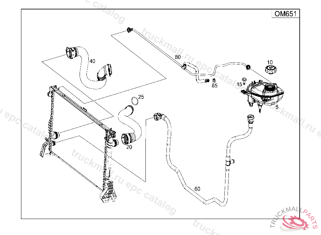 VENT LINE FROM RIGHT COOLER TO EXPANSION RESERVOIR AND ENGINE