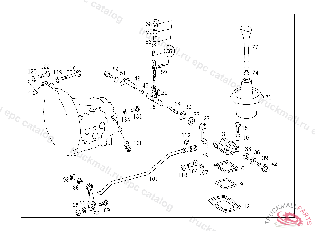 SHIFT LEVER 1ST THRU 4TH SPEED, 000 134645 003 068549 007 055244 083 002543 086 001979 093 002282 102,103 119043 105 140054 183 004351 190 005605