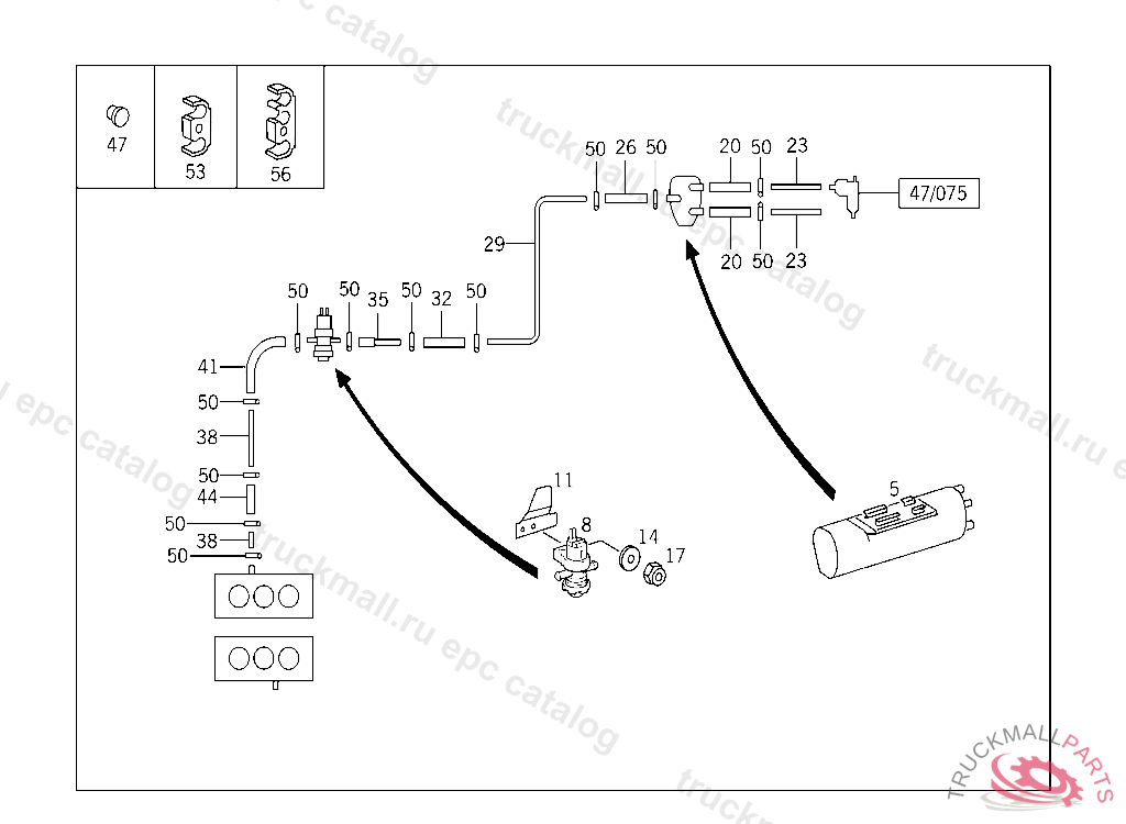 HOSE ENGINE TO REGENERATION VALVE RECHTS, F 125158 EXCEPT CODE 805 ALSO INSTALLED IN VEHICLE TO F 125157 WITH CODE 806