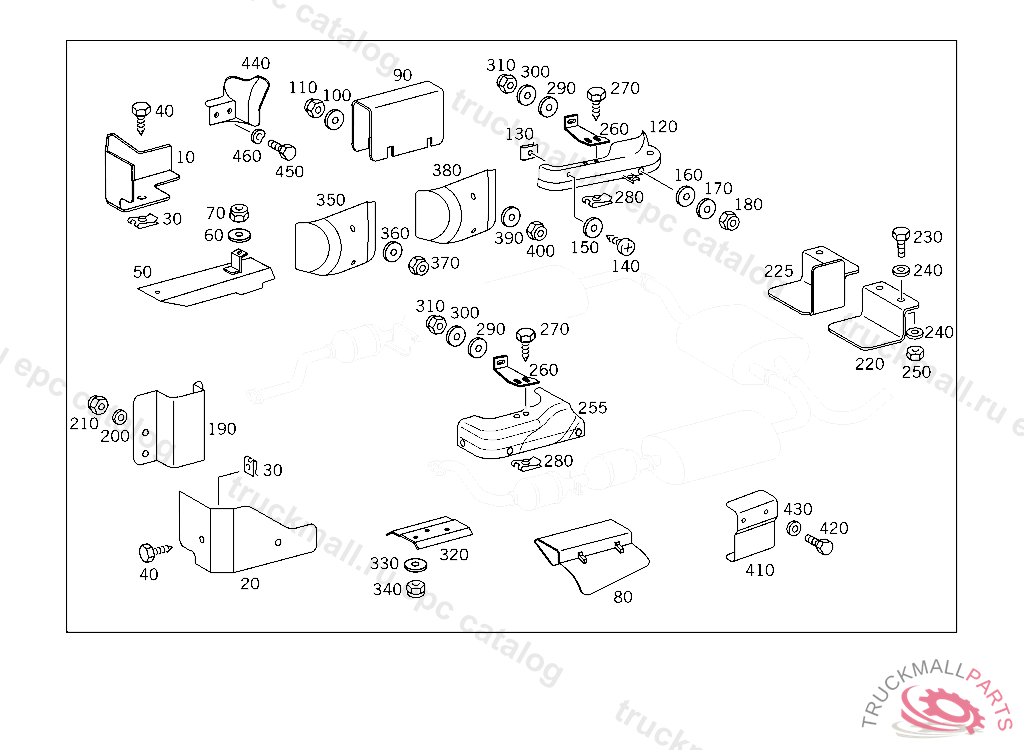 PROTECTIVE PLATE SHIELD FOR RUBBER BEARING AT SUSPENSION FOR MUFFLER