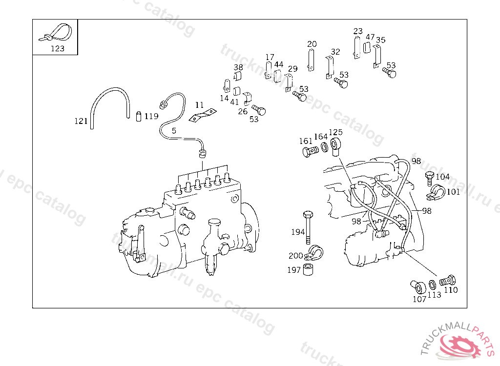 PIPE BRACKET FOR TWO LINES, FROM ENGINE 134342 YEAR OF MANUFACTURE 1990 UP TO ENGINE 461718 YEAR OF MANUFACTURE 1998
