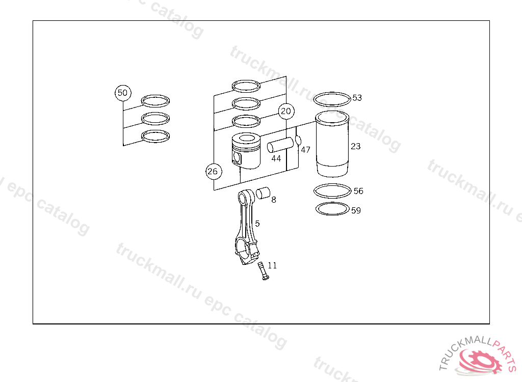 PISTON ACCORDING TO FITTING SIZE C, ONLY APPLICABLE TO MODEL 447.903-701 ONLY APPLICABLE TO MODEL 447.902-501 INAPPLICABLE TO MODEL 447.903-704