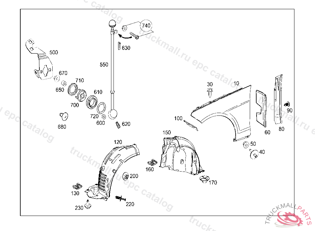 FRONT FENDER LEFT, FIRST EXHAUST STOCK OF OLD PARTS UP TO IDENT NO. A 62094720120321 L 02624420120331 V 00211820120331, Replaced By: A2128801118