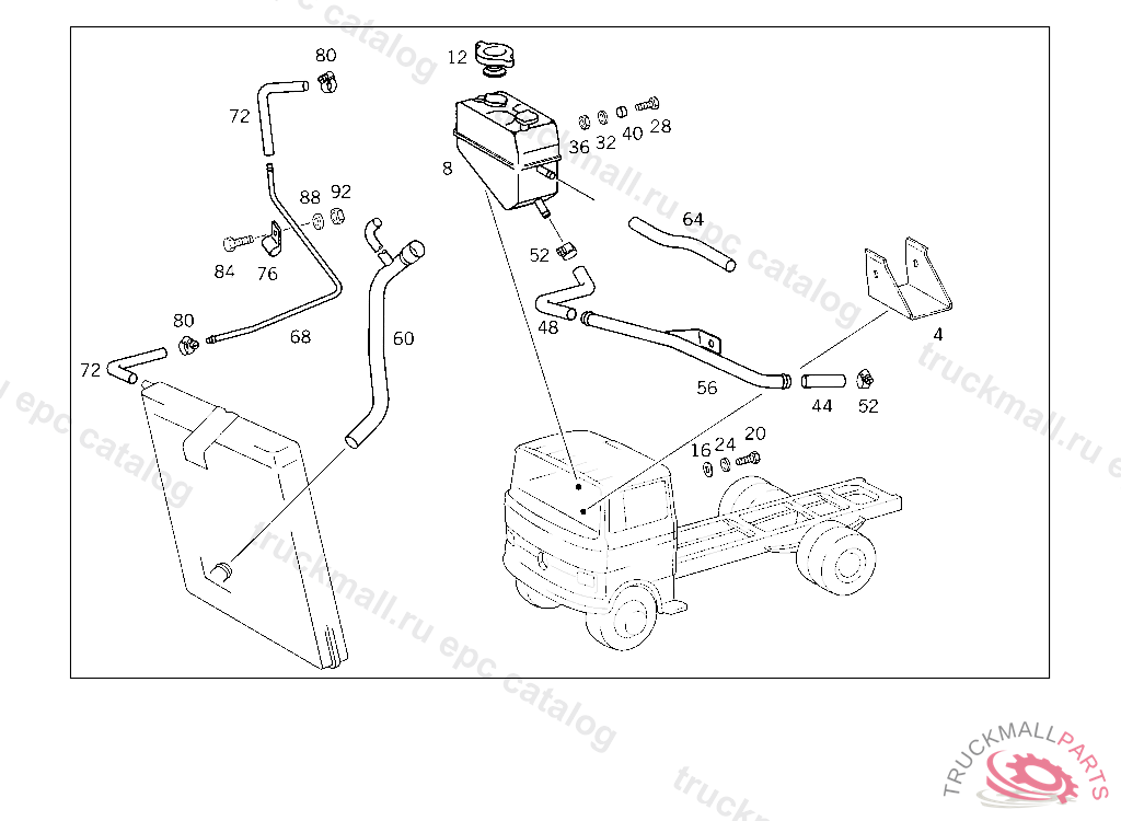 LINE FROM EXPANSION TANK TO ENGINE, NOT FOR USE WITH MERCEDES-BENZ CAB