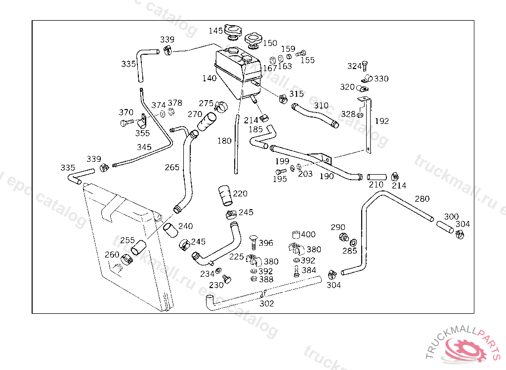 LINE FROM EXPANSION TANK TO ENGINE, NOT FOR USE WITH MERCEDES-BENZ CAB