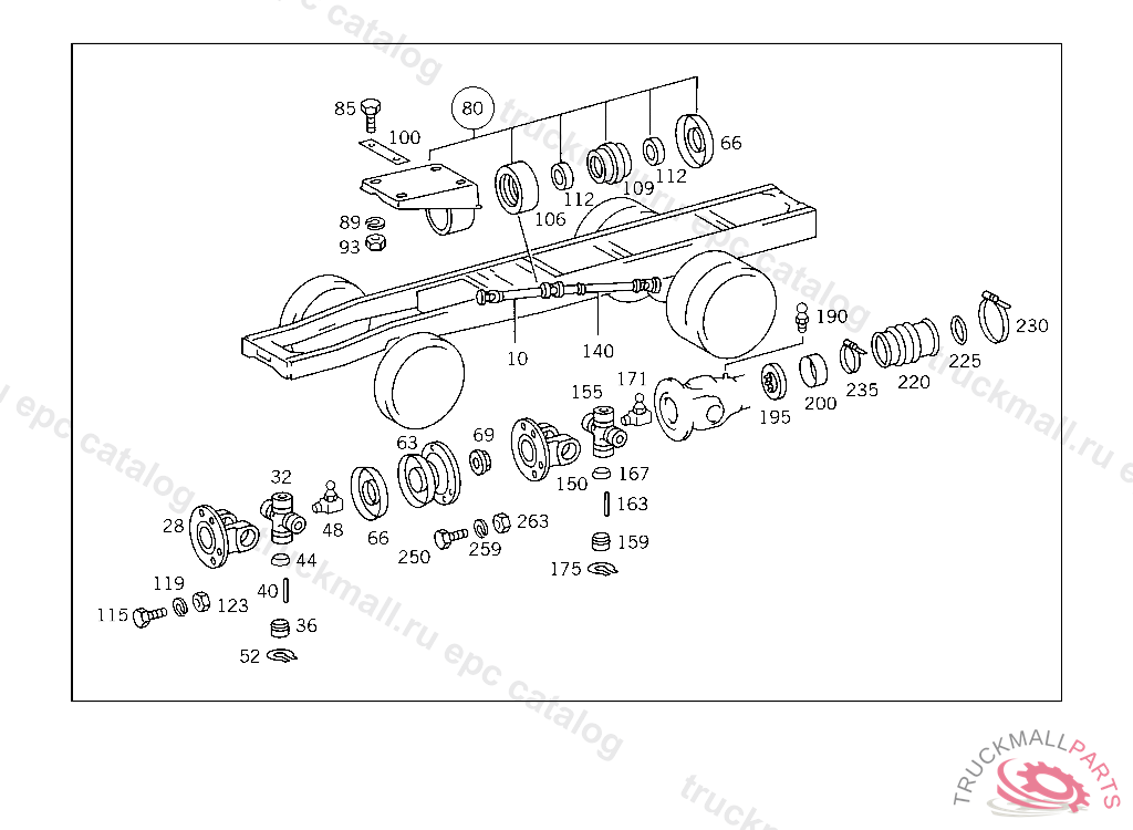PROPELLER SHAFT FROM TRANSMISSION TO PROPELLER SHAFT BEARING 882 MM, PART IS ONLY OR ALSO SUPPLIED AS RECONDITIONED PART