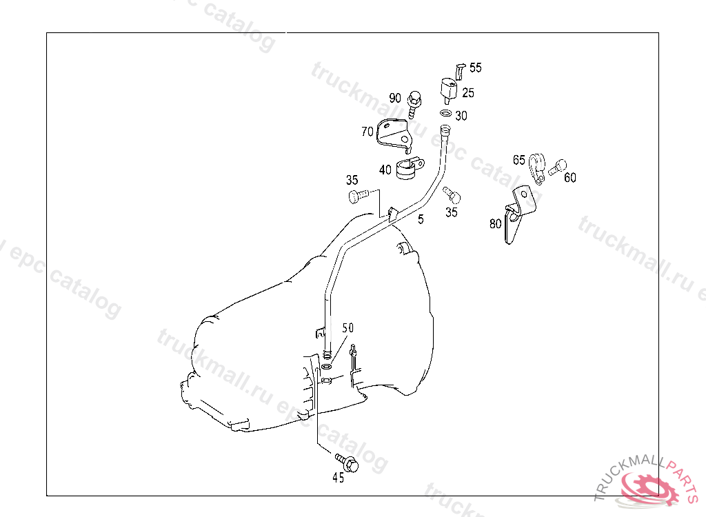 27 MERCEDES-BENZ AUTOMATIC TRANSMISSION - 125 ATTACHED PARTS FOR TRANSMISSION, OIL FILLER PIPE IL. 1