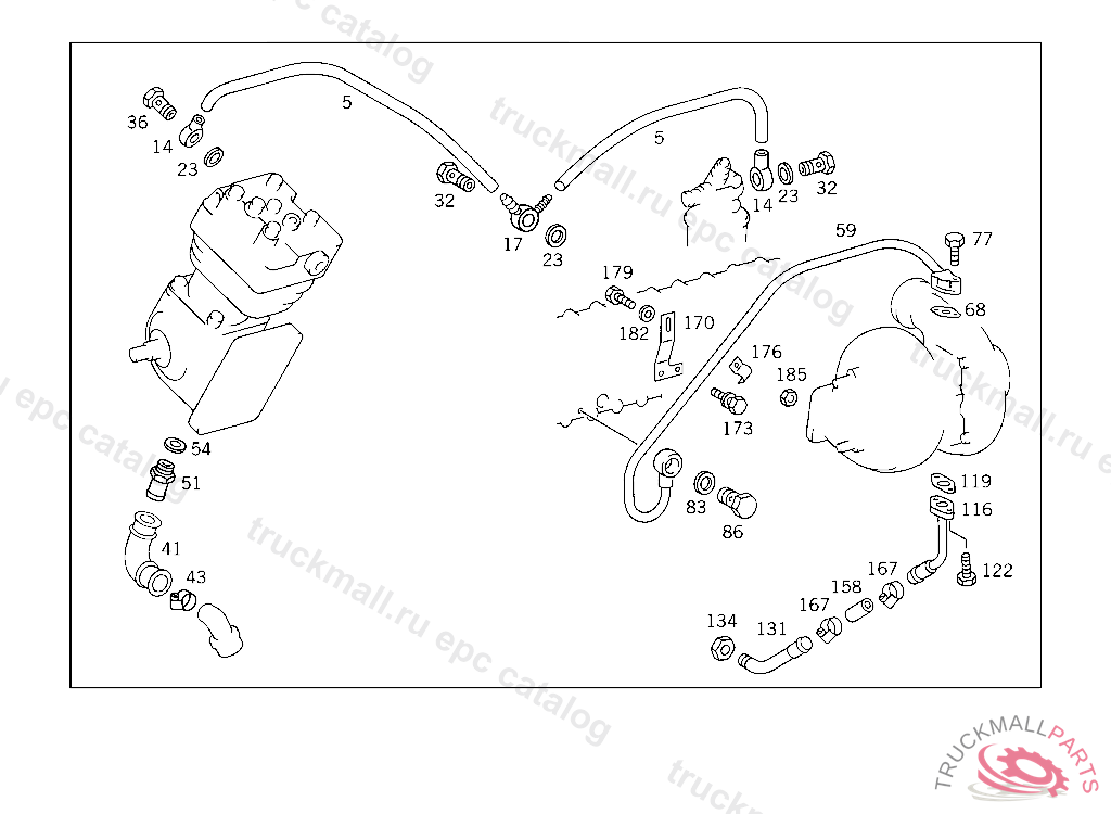 OIL LINE AIR COMPRESSOR-TO-TIMING-CASE OIL RETURN LINE, FROM ENGINE 238226 YEAR OF MANUFACTURE 1992 UP TO ENGINE SEE GROUP 09