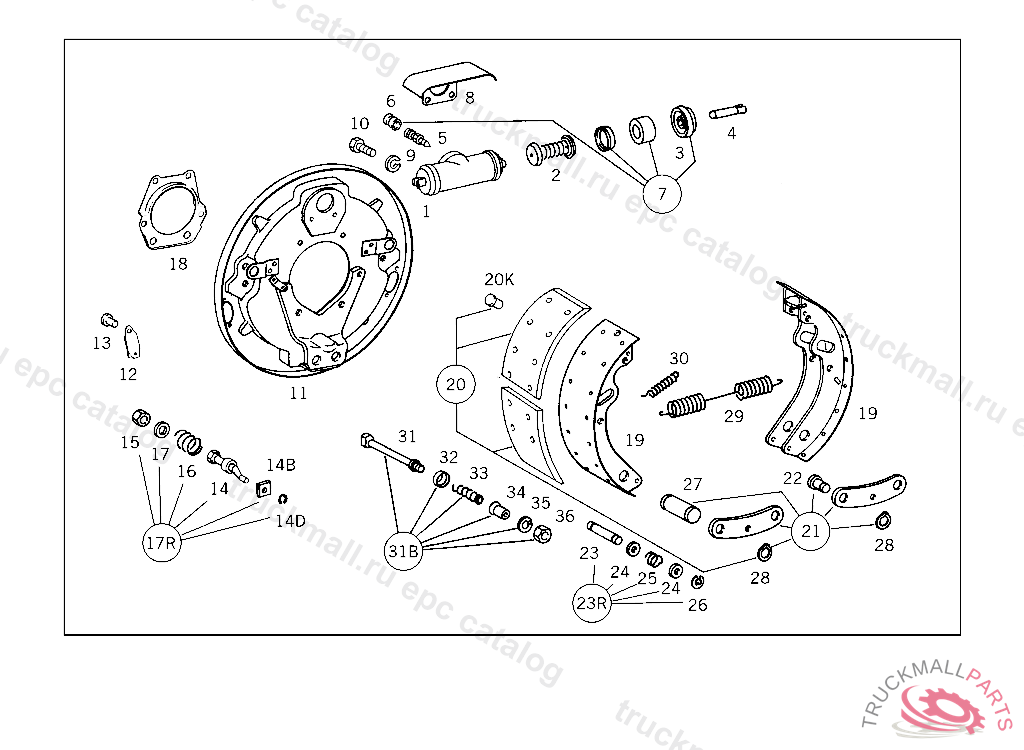 REPAIR KIT BRAKE SHOE SHACKLE, UP TO CHASSIS 910369 ALSO INSTALLED ON 500001-501455,FROM CHASSIS 910370 AND 501456-599999 SEE SPARE PARTS LIST 103