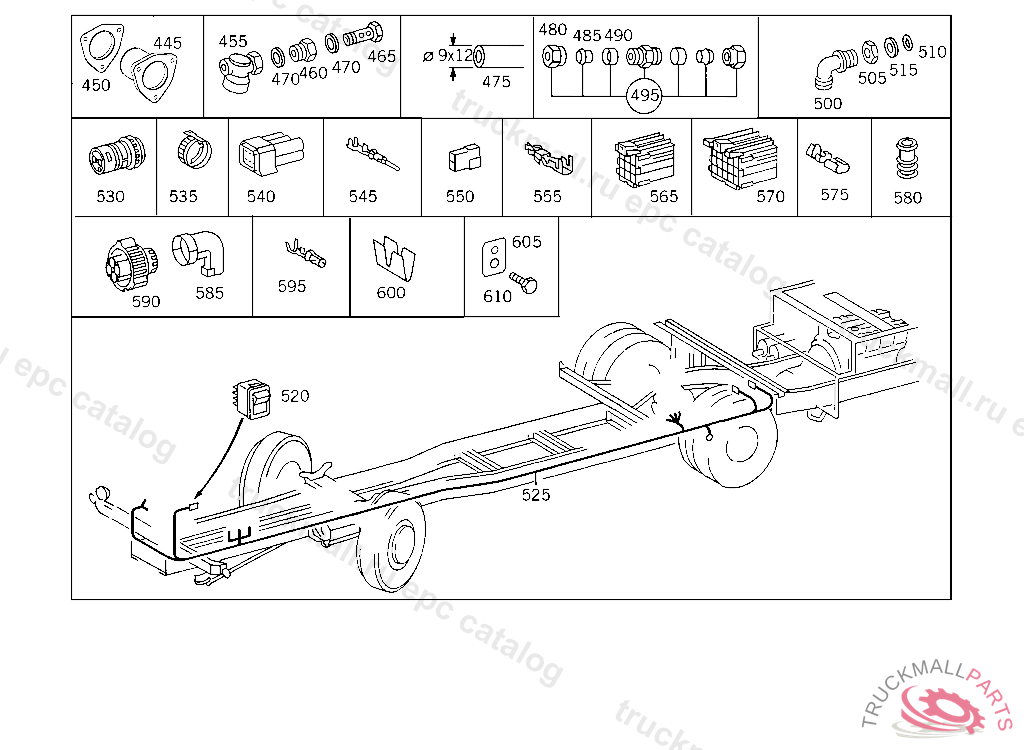 PIN BUSHING HOUSING. PLUG HOUSING FROM CHASSIS/CAB CONNECTION POINT TO TACHOGRAPH