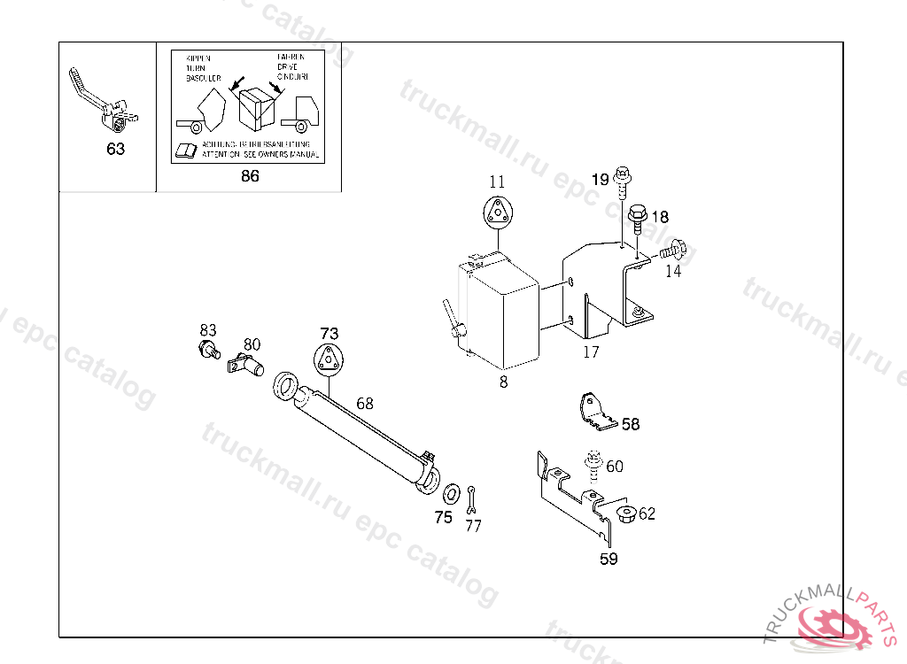 GUMMED LABEL HYDRAULIC SYSTEM USED FOR CAB TILTING, Replaced By: A9425843638