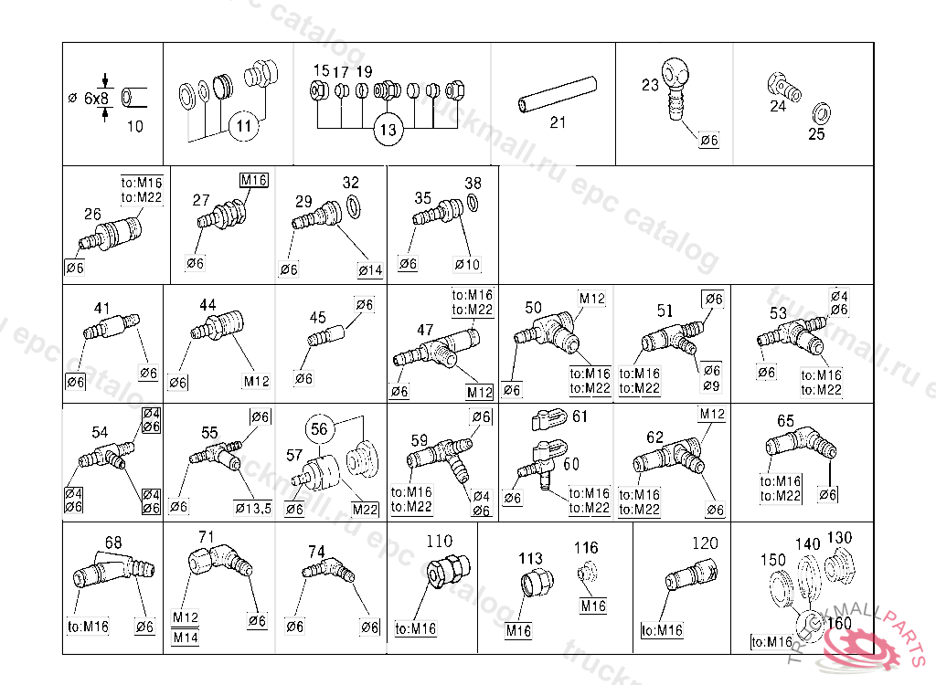 CONNECTION PIECE COMPRESSED-AIR-LINE PLUG-CONNECTION TO M16, 6MM, VOSS 232, Replaced By: A0049976989