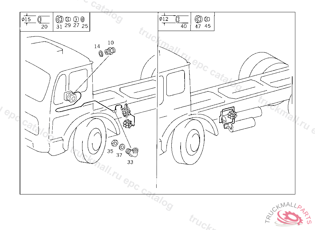 ELBOW FITTING FOUR-CIRCUIT PROTECTIVE VALVE, CONNECTION: "1", 620.415 UP TO CHASSIS 5 014668 620.416 UP TO CHASSIS 5 000515 620.417 UP TO CHASSIS 4 972023