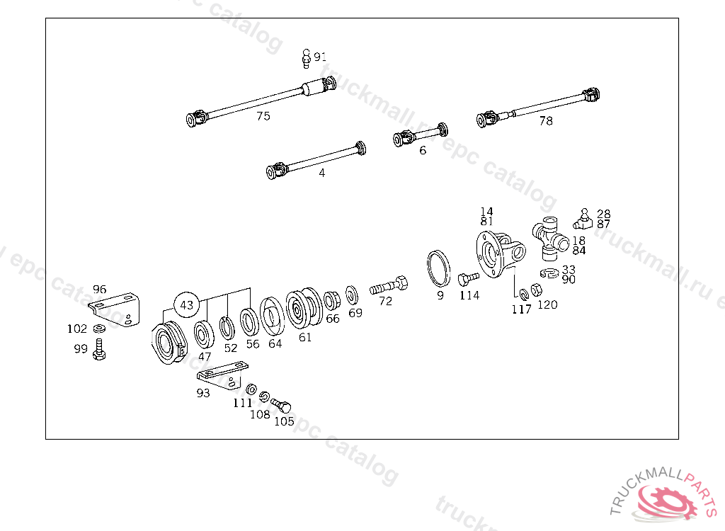 PROPELLER SHAFT FROM PROPELLER SHAFT BEARING TO REAR AXLE I 1884 MM, PART IS ONLY OR ALSO SUPPLIED AS RECONDITIONED PART