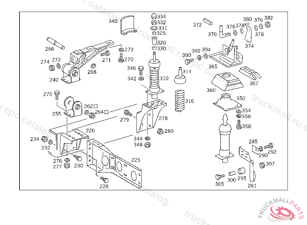 GUIDE CAB SUSPENSION,REAR LEFT, 385.068,069 ON VEHICLES WITH DB CAB ONLY 385.019 FOR USE WITH SHORT MERCEDES-BENZ CAB5 204965