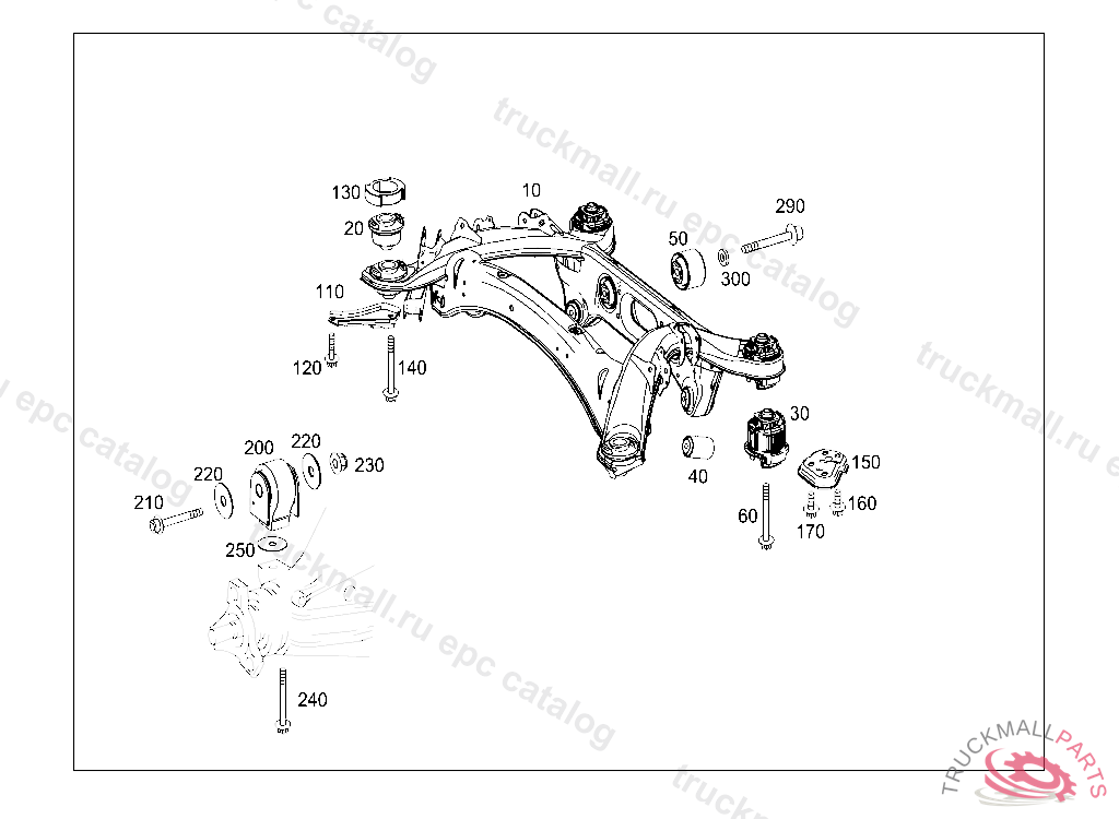 REAR AXLE CARRIER WITH RUBBER MOUNTING, FIRST EXHAUST STOCK OF OLD PARTS UP TO IDENT NO. F 20131230, Replaced By: A2313505200