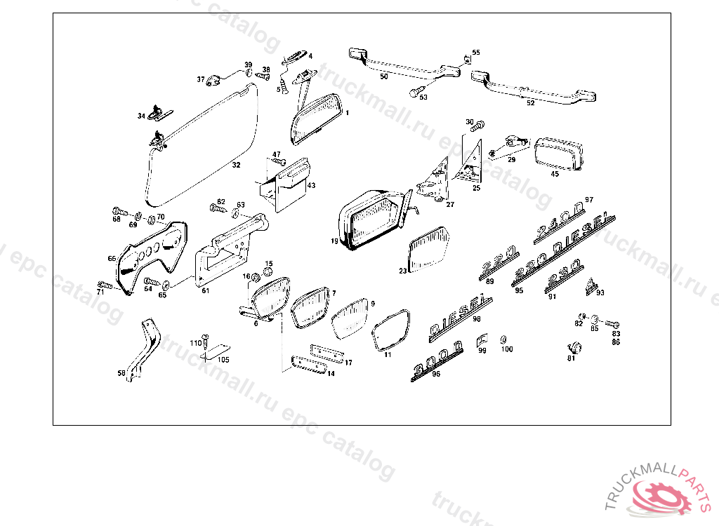GRIP RAIL REAR, STATE COLOR NUMBER WHEN ORDERING UP TO CHASSIS: BAMBOO: 011 105357 060 111170 062 105330 CREAM-COLORED: 011 105435 060 111537 062 105411 GREY: 011 105665 060 112179 062 105545