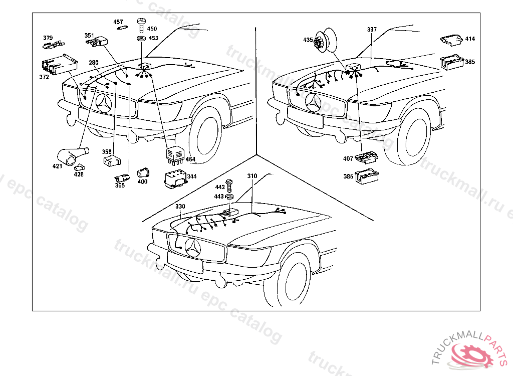 ELECTRIC CABLE , FROM CHASSIS: 107.022 004114, EXCEPT FOR: 004115,004130 107.023 011971, EXCEPT FOR: 011972,011974,011975,011978 107.024 019072, EXCEPT FOR: 019073-019075,019080,019082-019083,019086,019087,019095,019112,019159. 107.042 003213 107.043 013156 107.044 042316, EXCEPT FOR: 042317,042322,042328,042361,042371-042372,042453.