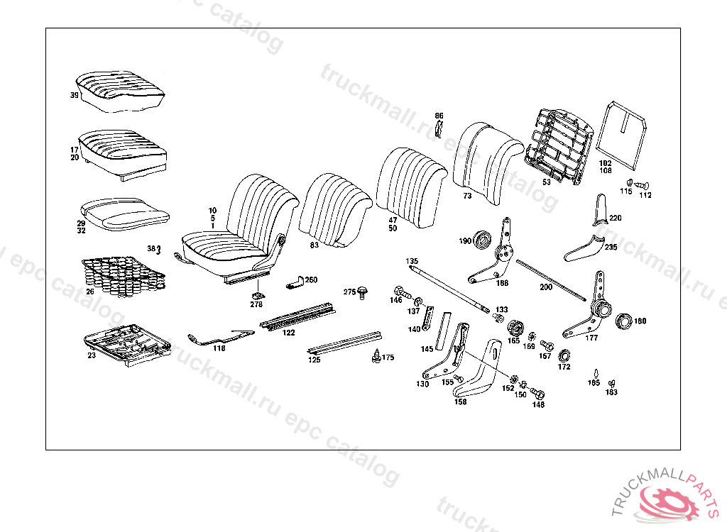 BACKREST , UP TO CHASSIS: 010 111535, EXCEPT FOR: 111524,111526,111528,111529,111531,111532,111534. 015 143407, EXCEPT FOR: 143313-143316,143318,143319,143321,143323,143327-143331,143333,143334,143336-143341,143343-143406. 110,112 294597, EXCEPT FOR: 293636,293758,293945,294045,294236,294237,294238,294336,294337,294449,294452,294456,294461-294465, 294467,294470,294473-294476,294478,294480,294483,294484,294487,294489,294490,294492,294493,294495- 294497,294499-294506,294509-294519,294521-294528,294530-294541,294543-294560,294562-294596. 115 150531, EXCEPT FOR: 150441,150447,150468-150476,150478-150480,150483-150485,150487-150494,150496-150503,150505-150530.