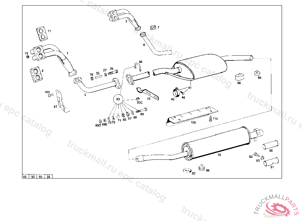 REPAIR KIT FROM PLUG CONNECTION, FROM CHASSIS: 100,102,103,110,112 156445 115 074228 ONLY APPLICABLE TO EXHAUST MUFFLER WITH PIPE CLAMP