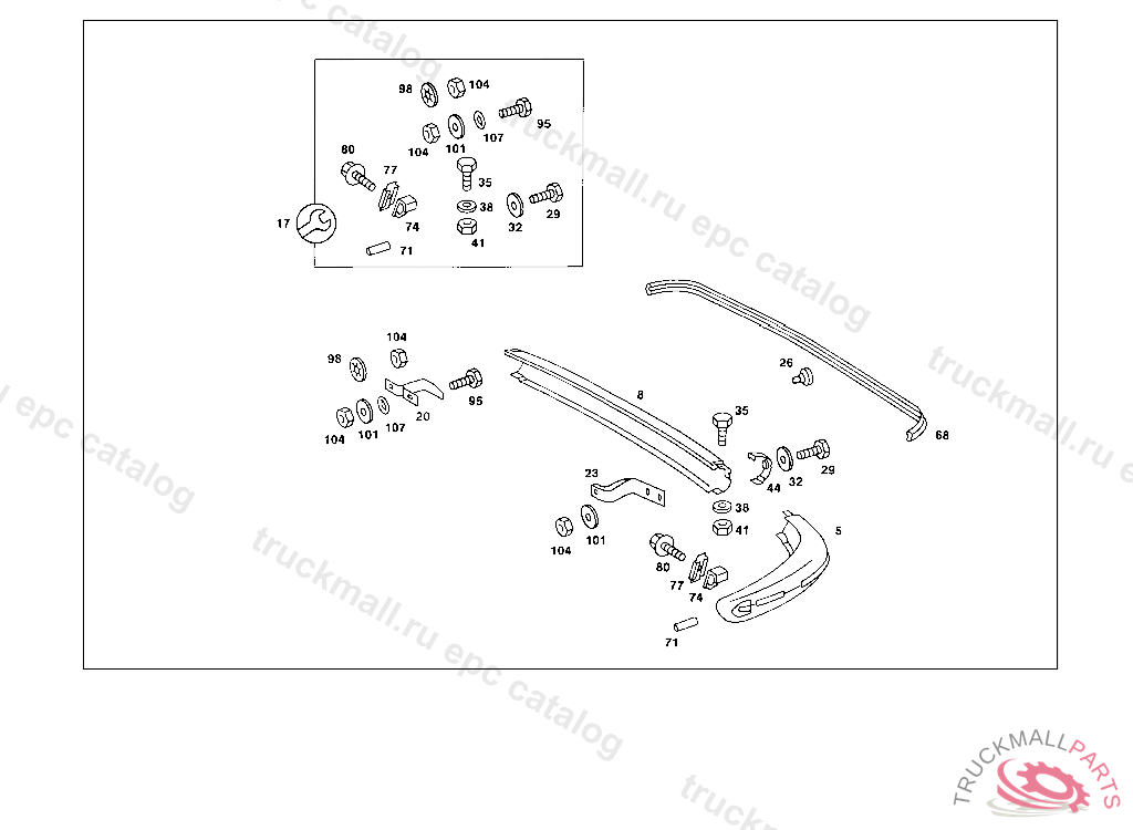 BRACKET RIGHT,REAR BUMPER TO CROSS MEMBER, 000 076113 003 037252 007 034197 102,103 055859 105 070819