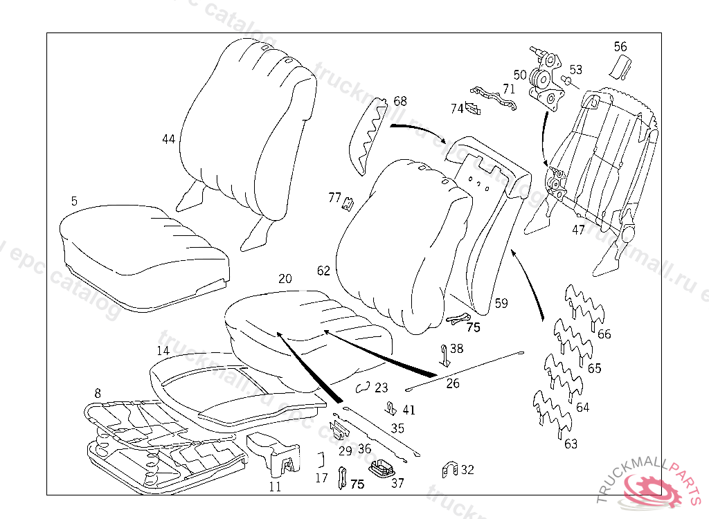 SEAT CUSHION MB-TEX,RIGHT,LESS HIGHT ADJUSTMENT,NO.9045I NO.5070I NO.8310I NO.8320I NO.8411I NO.6121I NO.3111I NO.7095I I