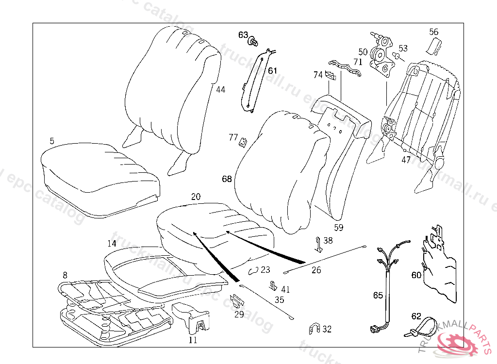 BACKREST RIGHT SEAT, NO.7081I NO.5073I NO.8313I NO.8323I NO.8414I NO.6096 AI NO.3114I NO.7147I I NO.6124 BI
