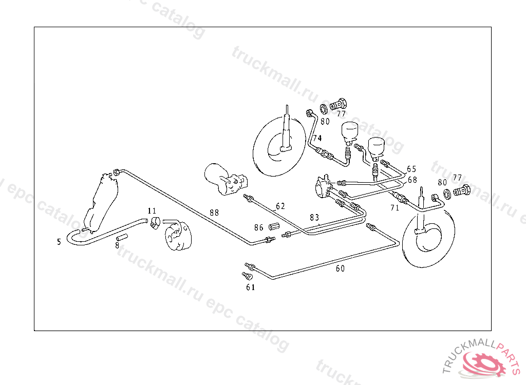 LINE FROM HEIGHT CONTROL VALVE TO RIGHT SPRING-LOADED BRAKE UNIT