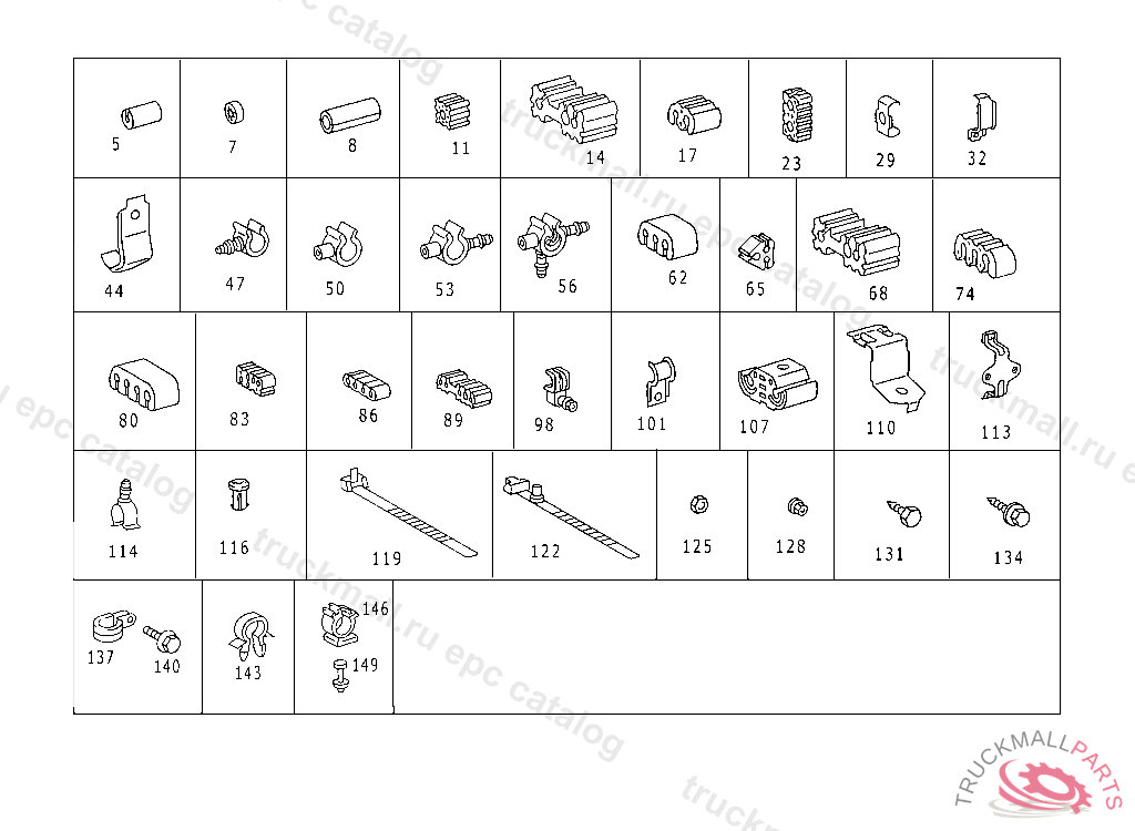 CLAMP BRAKE LINE TO FIRE WALL, 000 130186 003 066451 007 053318 083 002304 086 001762 093 001874 102,103 113215 105 135079 183 004049 190 005029