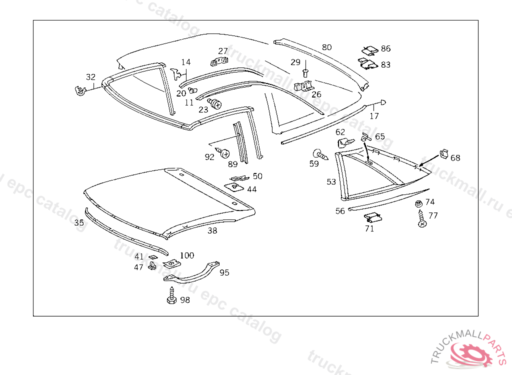 SEAL BETWEEN HEADLINER AND ROOF FRONT RAIL BEI GLASDACH